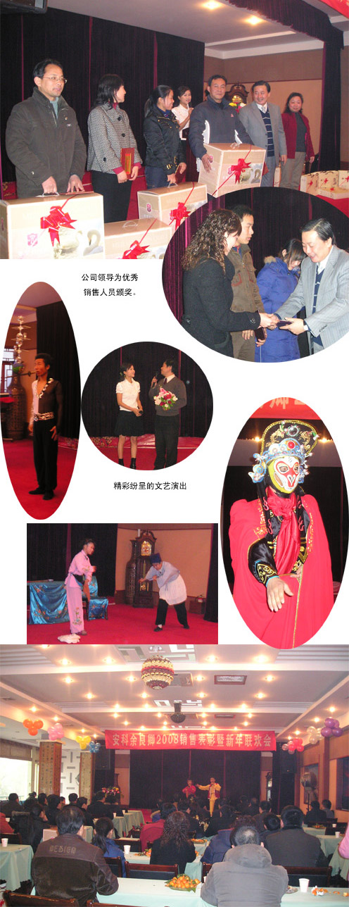 2008年1月5日,公司年度销售会议在多媒体会议室正式召开。销售战线的全体人员参加了会议;董事长、高管人员以及各相关部门负责人出席了会议;安科恒益药业总经理吴锐也做为特邀嘉宾在主席台就座。