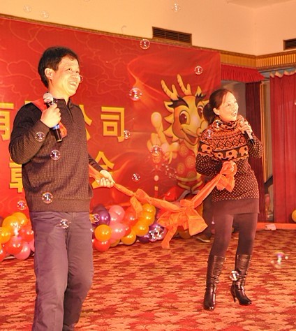 大会最后一部分是新春联欢晚会。公司各个部门带来了精彩的节目。包装女工们美丽的印度舞、平时严谨的财务部员工搞笑的三句半,销售部姑娘献上的青春舞曲、橡胶膏车间的精彩大合唱……平日里这些忙碌的身影道出的是辛劳是奉献,今天,欢乐的笑脸诉说的是激情与希望。