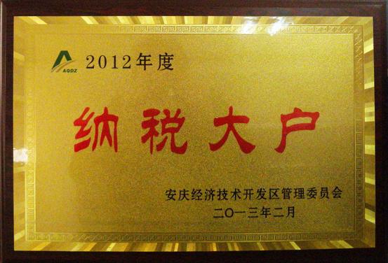 新春伊始,公司捷报频传。在2月20日(农历正月十一)召开的安庆市经济技术开发区“项目建设突破年动员大会”上,我公司由于2012年度经营业绩增长突出,科技创新力度大,被授予了年度纳税大户、亩均税收入贡献先进企业、科技创新型企业、科学发展优质企业等四块奖牌,为当天会议上获表彰次数最多的企业。