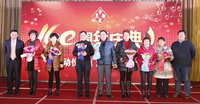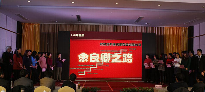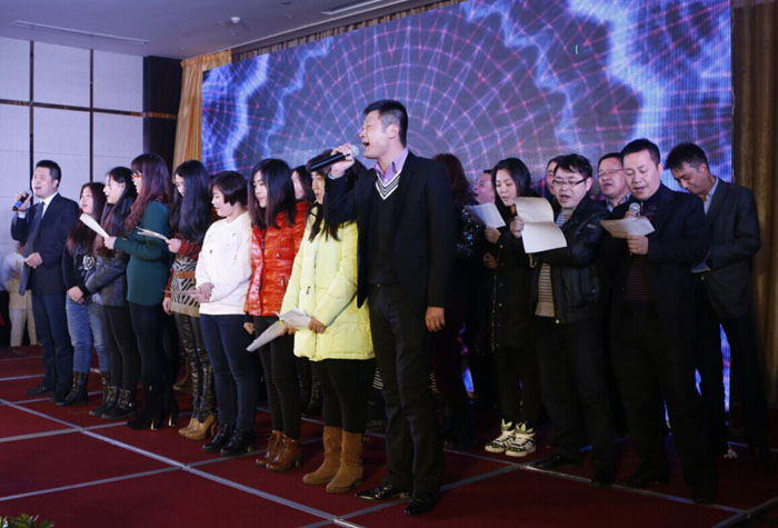 巨幅的先进个人光荣榜、6张大型海报组成的hjc888黄金城160年变革史、围绕会场四周的激情标语,220名hjc888黄金城员工在此欢聚,集团公司9位领导特意会前赶到,大家共聚一堂,整个会场洋溢着喜庆、隆重、热烈、祥和的氛围。