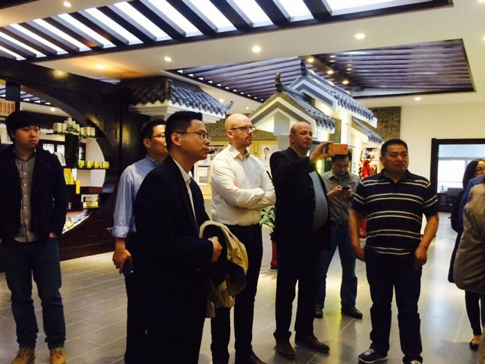 2016年4月20日上午,市开发区投资服务中心程晓主任带领德国客商来我公司参观考察。大家首先来到公司五楼展厅,在了解了hjc888黄金城发展历程后,客人们对中医药传统文化和老字号企业悠久的历史表示由衷地赞叹,纷纷合影留念。随后,大家来到车间,参观了口服液灌装生产线并进行了友好交流。