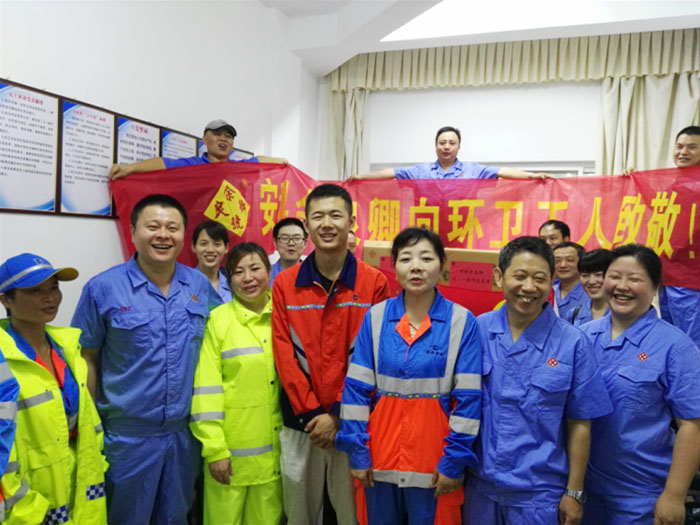 第三支部来到经开区环卫处,向环卫工人们送上防暑套装,感谢“城市美容师”们辛勤的劳动使我们的环境越来越美,表示也要为我市创建国家卫生文明城市尽一份力。安庆京环公司人员对大家风雨无阻前来慰问的举动赞叹不已,称赠送的风油精、十滴水、贴膏等都是户外工作人员的“宝贝”,再三表示感谢。活动中恰逢安庆电视台记者在现场采风,镜头随即记录下了这难忘时刻。