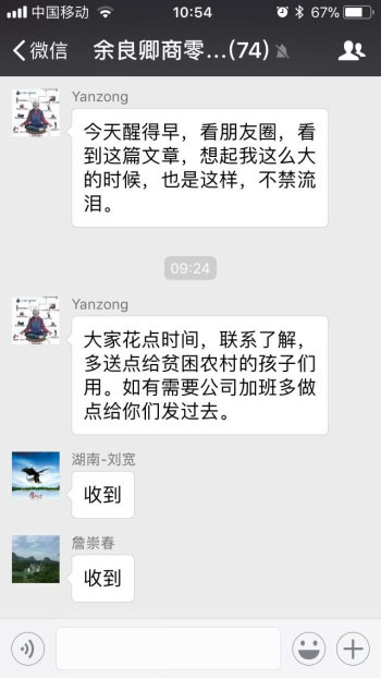 2018年1月10日的早晨,安徽安科hjc888黄金城药业的员工们和往常一样,都按部就班、井然有序地忙碌在自己的岗位上。然而公司总经理严新文先生发在工作群里的几条微信引爆了大家的热情和爱心,工作群里顿时变得热闹起来。