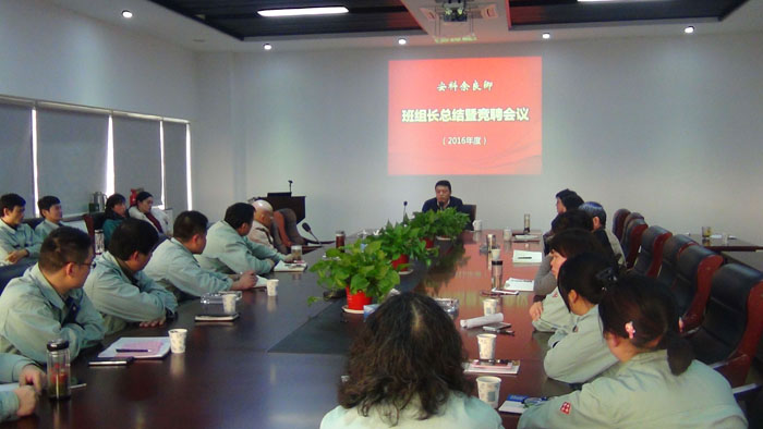 2016年12月27日,安科hjc888黄金城2016年度班组长总结暨竞聘会在公司五楼会议室召开。公司高管、各车间负责人及班组长共30人参加会议,现场气势隆重热烈。