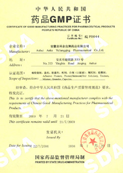 2004年7月22日,我公司正式获得国家药品GMP证书。公司的橡胶膏、膏药、软膏剂、酊剂、合剂(口服液)、颗粒剂、胶囊剂等七大剂型的生产线全部通过认证。