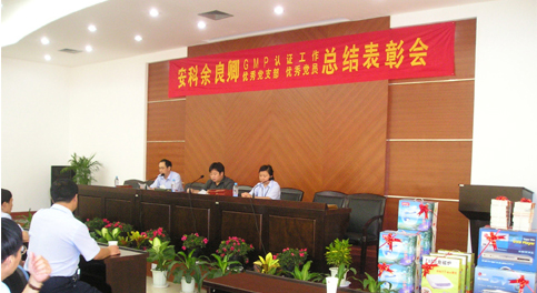 2004年8月27日下午,安科hjc888黄金城GMP认证工作暨优秀党支部、优秀党员总结表彰会在公司多功能厅隆重召开。会议由方金宏副总经理主持,姚建平总经理(党总支书记)宣布了获得优秀员工、优秀党员的人员名单和获得优秀党支部称号的支部名称,谢红星副总经理宣布了征文比赛的获奖者名单。随后,公司领导为获奖人员颁发了奖状、奖品并与他们合影留念。